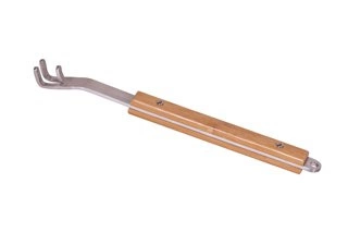 Żeliwna gofrowania do grilla lub ognska. Materiał (uchwyty): drewno, materiał (forma): żeliwo, uchwyt: drewno i stal nierdzewna. Dł. x szer. x wys.: 20 x 70 x 3 cm. Waga: 2650g.