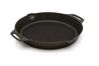 Patelnia grillowa (żebrowana). Działa na wszystkich typach kuchenek (w tym indukcyjnych,) polecana na ognisko. Pojemność: 2,5 l, średnica 30 cm, średnica dna: 25 cm, wysokość: 5 cm, waga: 4 kg, materiał: żeliwo. Certyfikowany sprzedawca Petromax.